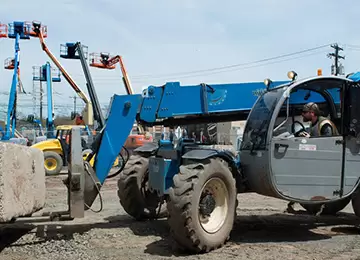 These lifts do not have a vertical mast like most warehouse forklifts and are typically used on construction sites where the ground is dirt or unpaved. These lifts raise materials to upper levels and have unique turning capabilities. Training on these lifts is specialized and requires specialized training. This class also covers the standard vertical mast rough terrain lift with larger tires and capacities.